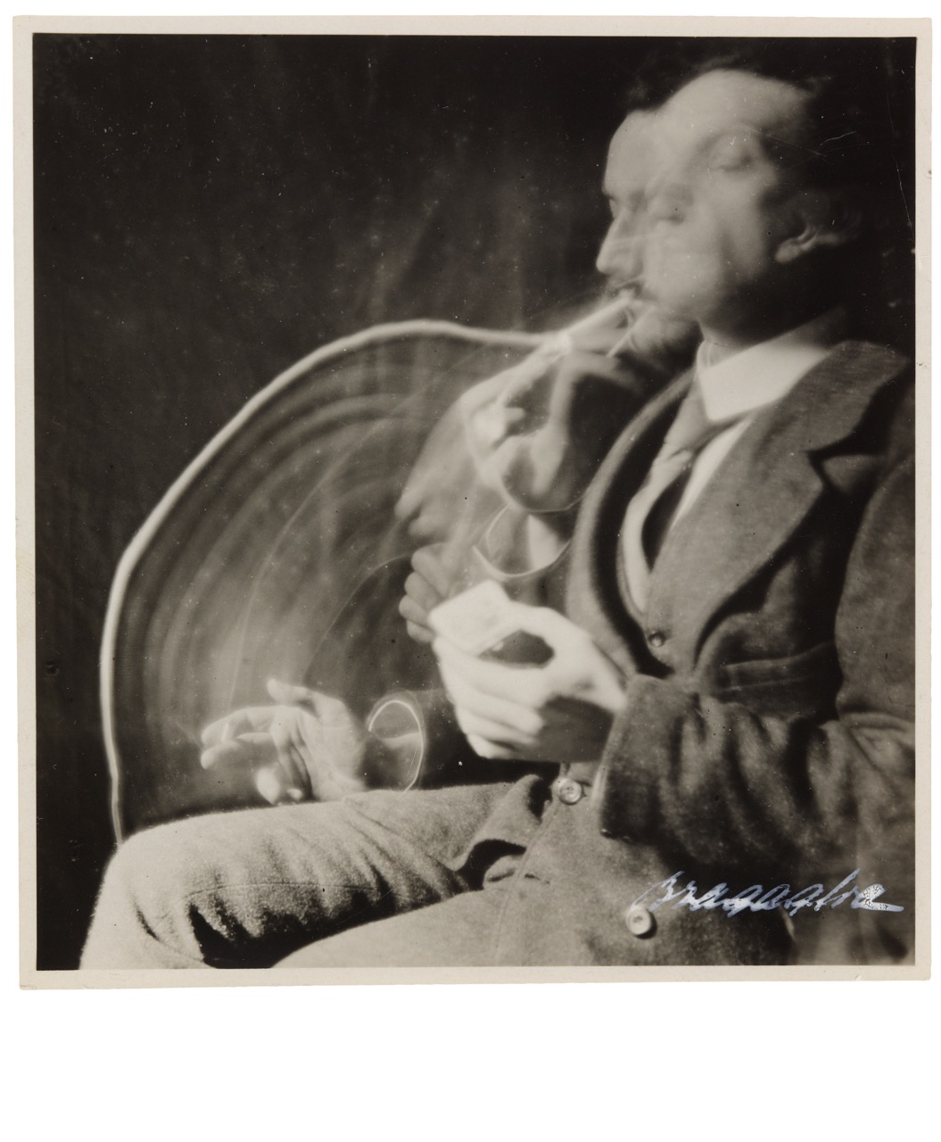 Incongruent, multicoloured, and often violent, many works of futurism’s early “heroic” phase are difficult to admire, even before one encounters their overtly fascist and misogynistic undertones. Borrowing from movements such as cubism, divisionism, expressionism, and pointillism, rare exemplary works include Anton Giulio Bragaglia’s multiple-exposure gelatin silver photographs Lo schiaffo (The Slap, 1910) 6, Dattilografa (Typist, 1911) 7, and Il fumatore—il cerino—la sigaretta (The Smoker—The Match—The Cigarette (1911) 8; Balla’s fragmented oil paintings La mano del violinista (The Hands of a Violinist, 1912) 9, Dinamismo di un cane guinzaglio (Dynamism of a Dog on a Leash, 1912) 10, and Volo di rondini (Flight of the Swallows, 1913) 11; and Boccioni’s “striding” bronze sculpture Forme uniche della continuità nello spazio (Unique Forms of Continuity in Space, 1913, cast in bronze 1949) 3. All pursued the futurist fascination with movement and simultaneity, while retaining recognisably human forms and subjects.