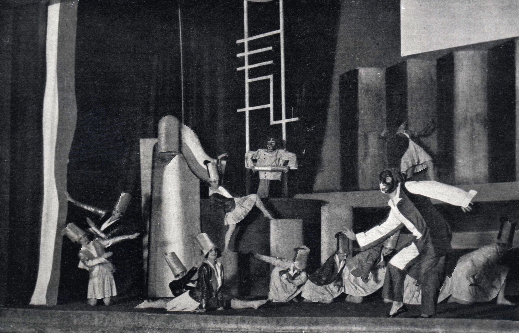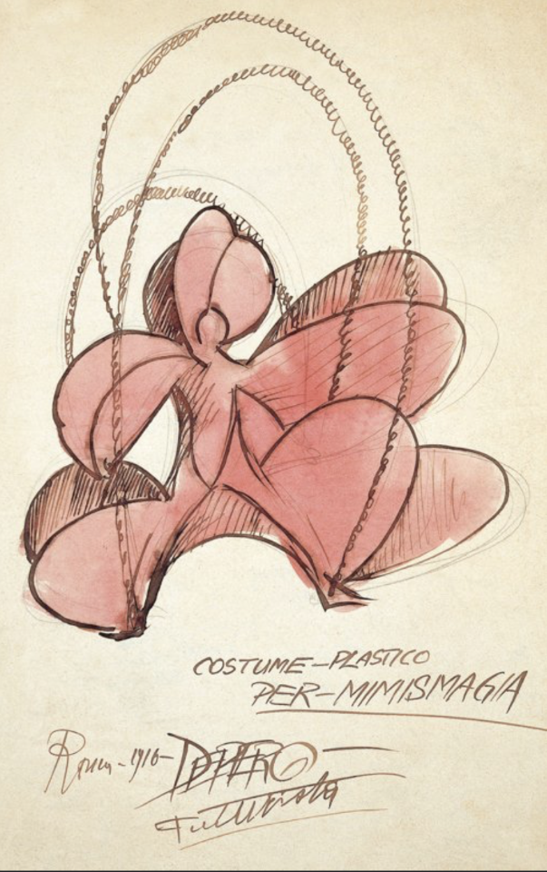 While its “heroic” phase (1909-1916) remains the most recognisable expression of futurism, the deaths of both Sant’Elia and Boccioni, along with the end of World War I, gave rise to a second phase. Second futurism (1918-1944) transformed the movement into something more decorative, genial, and theatrical, with artists such as Fortunato Depero and Enrico Prampolini extending futurist ideas more directly into cinematics, performance, and theatre. Depero created geometric, kinetic costumes and stage sets for I Balli Plastici (Plastic Dance, 1916-1918) 19, while Prampolini founded Teatro della Pantomima Futurista in Paris in the mid-1920s 20. Also designing its costumes and stage sets, Prampolini was fascinated by the possibility of a “cosmic” theatre in which performers could be replaced with coloured gases, mechanical movement, and explosive sounds. His later work for the Futurist Pavilion in Turin (1928) 21 and the Milan Triennial (1933) 22 reflected a synthesis between abstraction, architecture, and the avant garde.