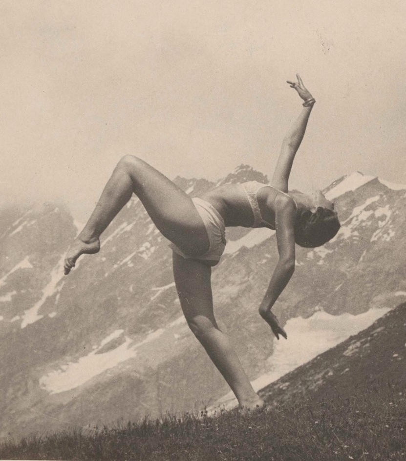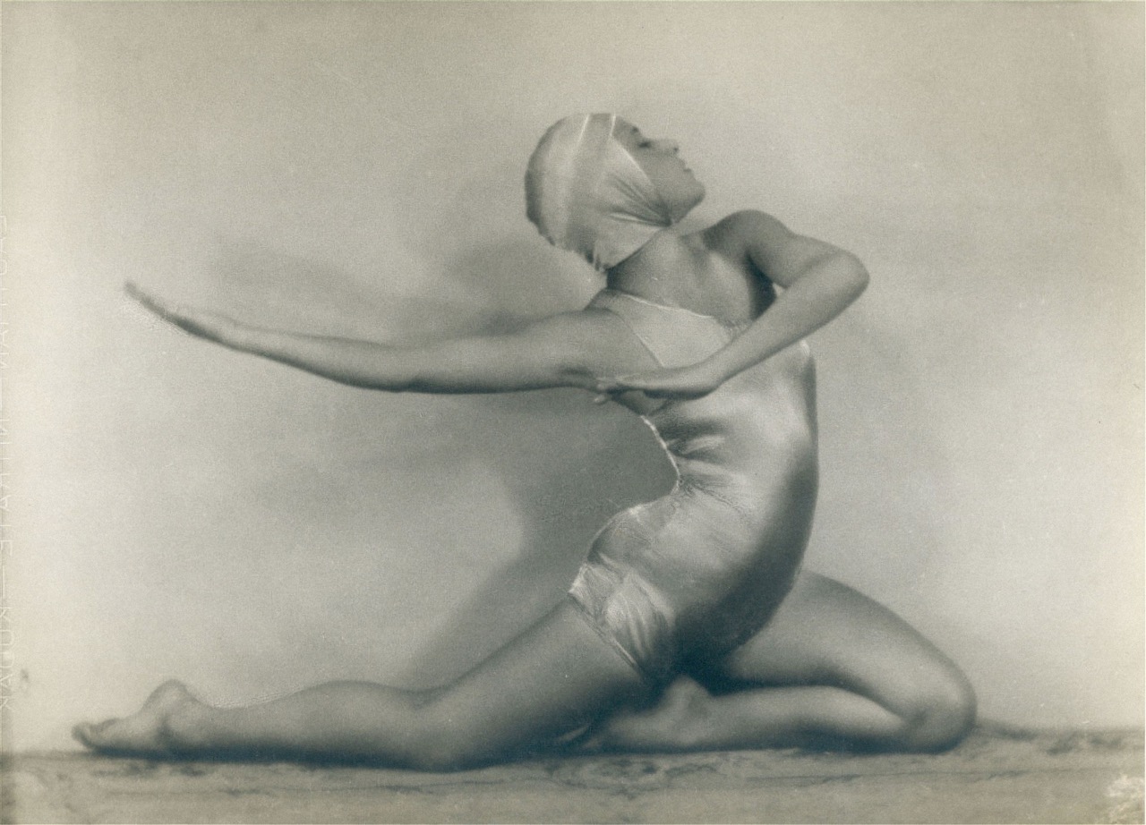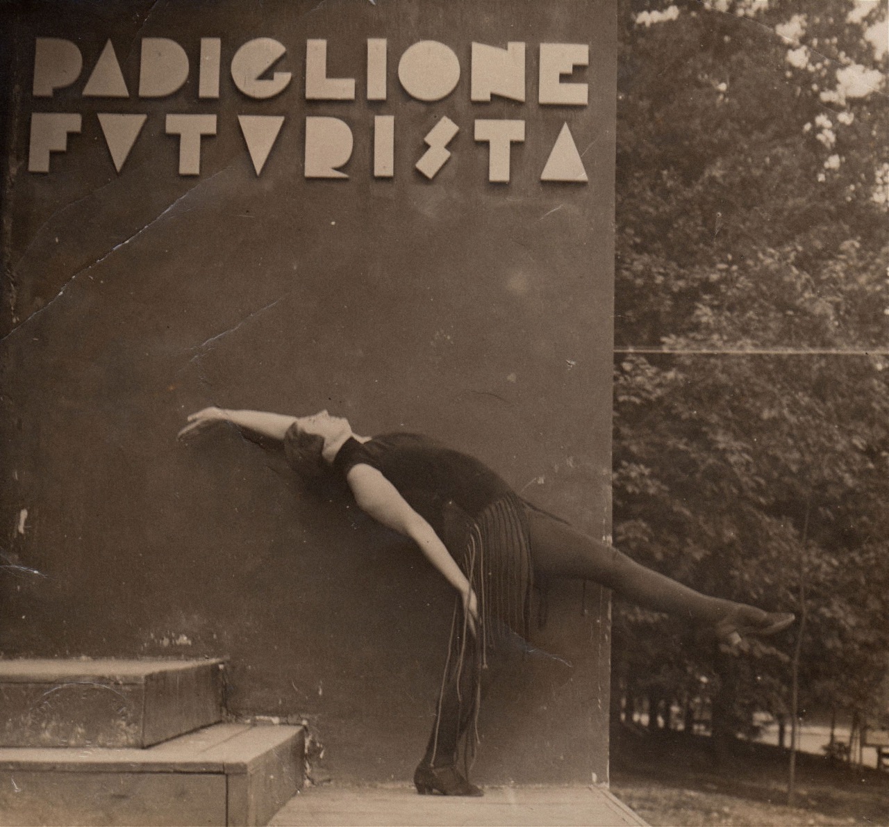 A movement long dominated by men, futurism had by this time begun to embrace the contributions of several women. Trained in classical ballet in Paris before joining Marinetti’s circle in Milan, dancer Giannina Censi invented a new style of dance that merged the sensation of flight with performance. For Simultanina (1931) 26, Marinetti’s futurist dance tour, at the Galleria Pesaro in Milan, Censi presented Aerodanze (Aerodance, 1931) 27, an experimental performance accompanied by the syllabic screams, trills, and whispers of Marinetti’s parole in libertà poems. Photographed by Giulio Bragaglia in Aerodanze 3 rovesciamento d’apparecchio (Aerodances 3: Device Overturning, 1931), her performances remain among futurism’s most striking aesthetic achievements. Likewise, painter Benedetta Cappa (Marinetti’s wife) offered a serene counterpoint to the movement’s more aggressive tendencies through her harmonious, luminous, and sensitive use of colour and form in works such as Sintesi delle comunicazioni aeree (Synthesis of Aerial Communications, 1933–34) 28, a mural celebrating aviation and aerial communications created for the Palazzo delle Poste in Palermo.