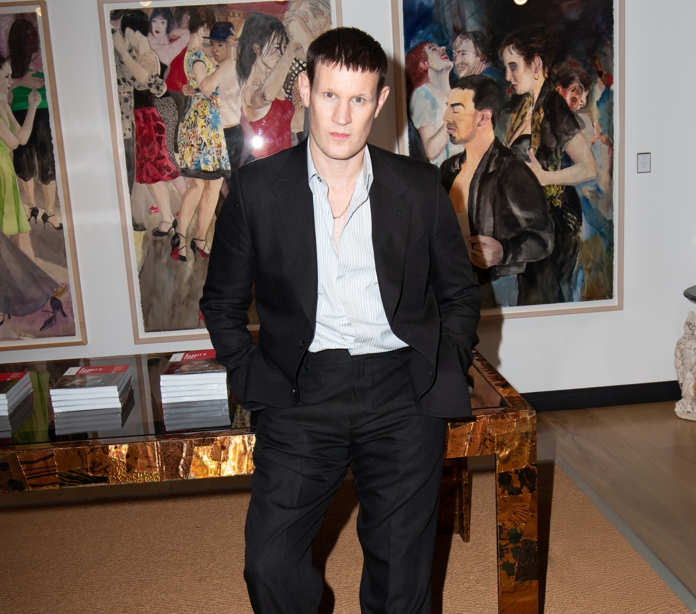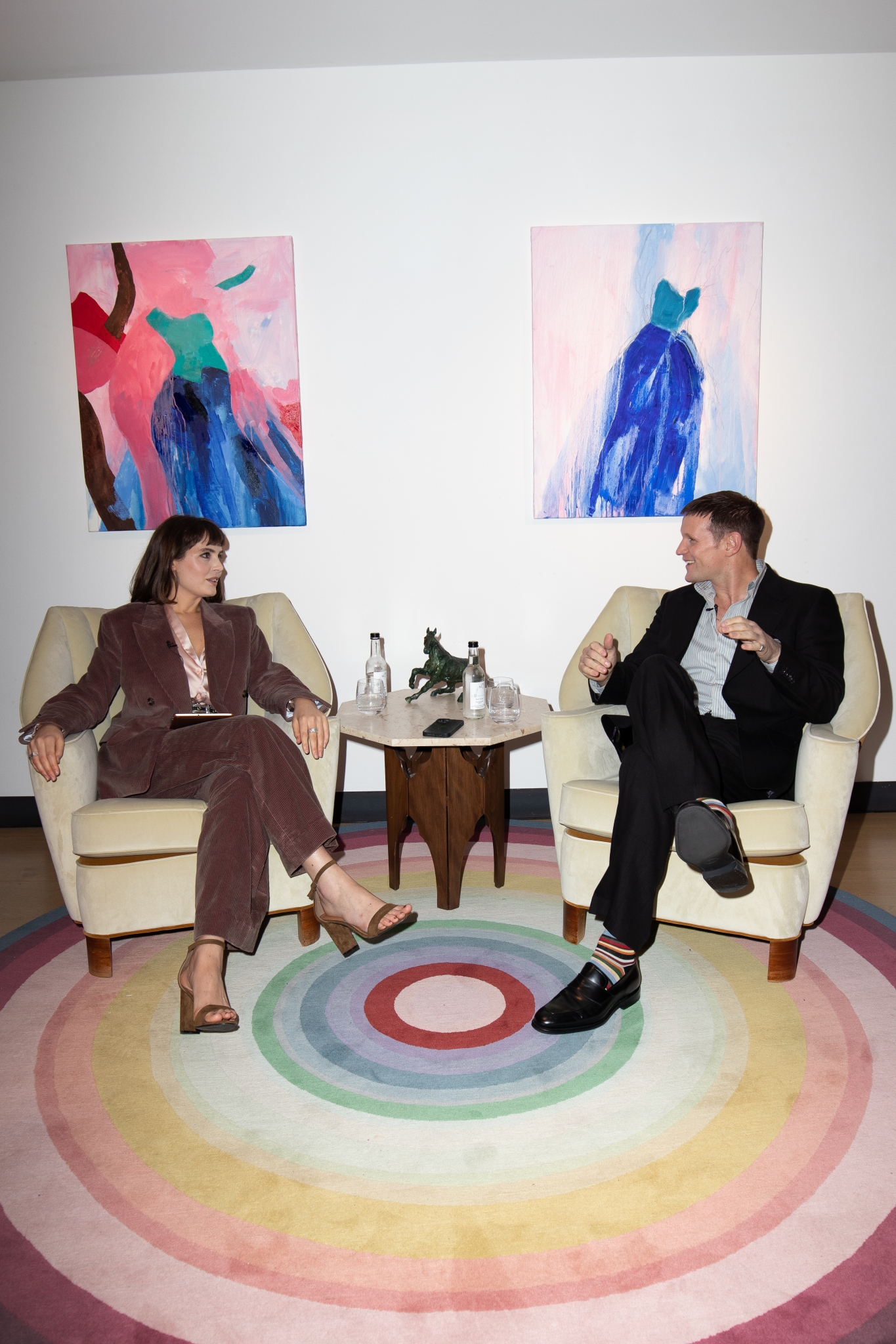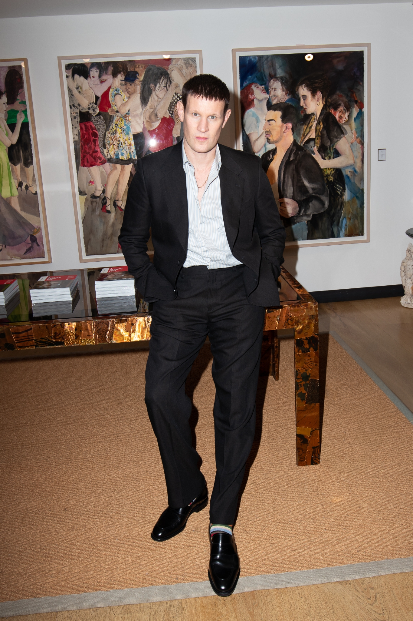 Last week, two days before Halloween on a cold and rainy night in London, I interviewed the actor Matt Smith in a glamorous nook of Paul Smith’s Mayfair boutique. Framed by bright artwork and a plush rainbow carpet, Matt cut a cool silhouette in his black suit, his ankles lit up by the design house’s signature stripe socks.
