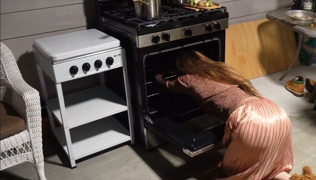 Only last month, Plath starred in a Lana del Rey music video. We don’t see her face, but we see her hourglass figure sliding itself softly into an oven. Del Rey has cast herself to play the poet: her hair is perfectly manicured for the suicide attempt. Her skirt is flattering. Her spine is arched. A friend tells me that this decapitated woman reminds him of the ludicrous and popular porn trope of women getting stuck in laundry machines, with their arses out and muffled voices pleading for help (usually from a family figure, such as a stepbrother), an unintentional echo with Plath’s poem ‘Daddy’.
